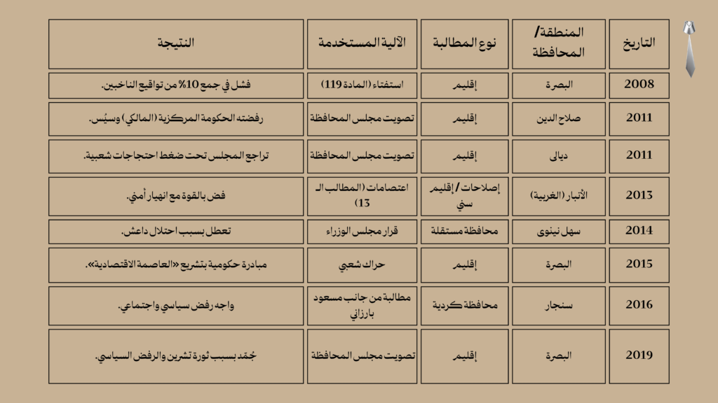 المطالبات بالأقاليم واستحداث المحافظات بعد 2003