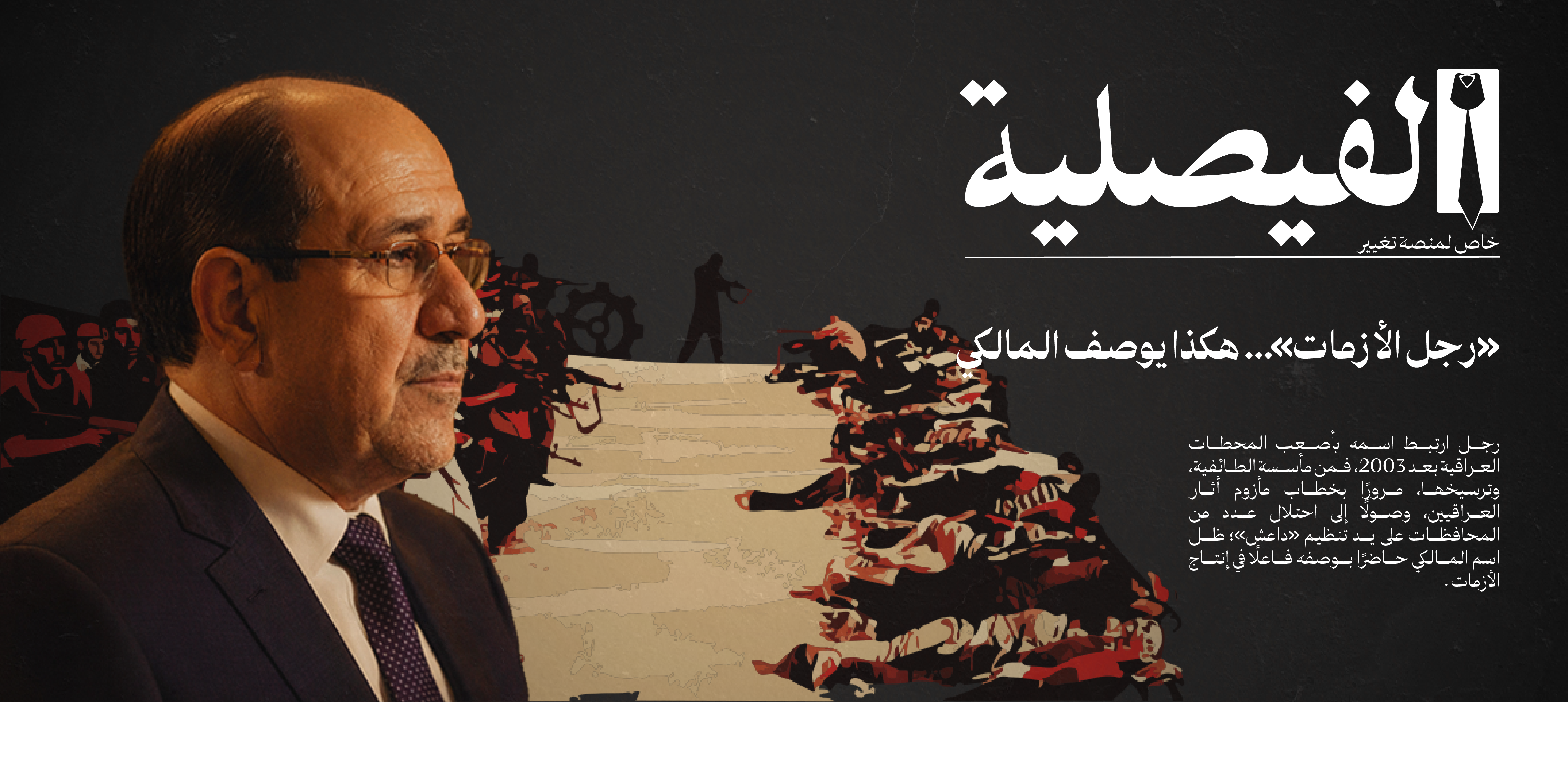 «رجل الأزمات»، هكذا يوصف رئيس ائتلاف دولة القانون، نوري المالكي، رجل ارتبط اسمه بأصعب المحطات العراقية بعد 2003، فمن مأسسة الطائفية، وترسيخها، مرورًا بخطاب مأزوم أثار العراقيين، وصولًا إلى احتلال عدد من المحافظات على يد تنظيم «داعش»؛ ظل اسم المالكي حاضرًا بوصفه فاعلًا في إنتاج الأزمات.